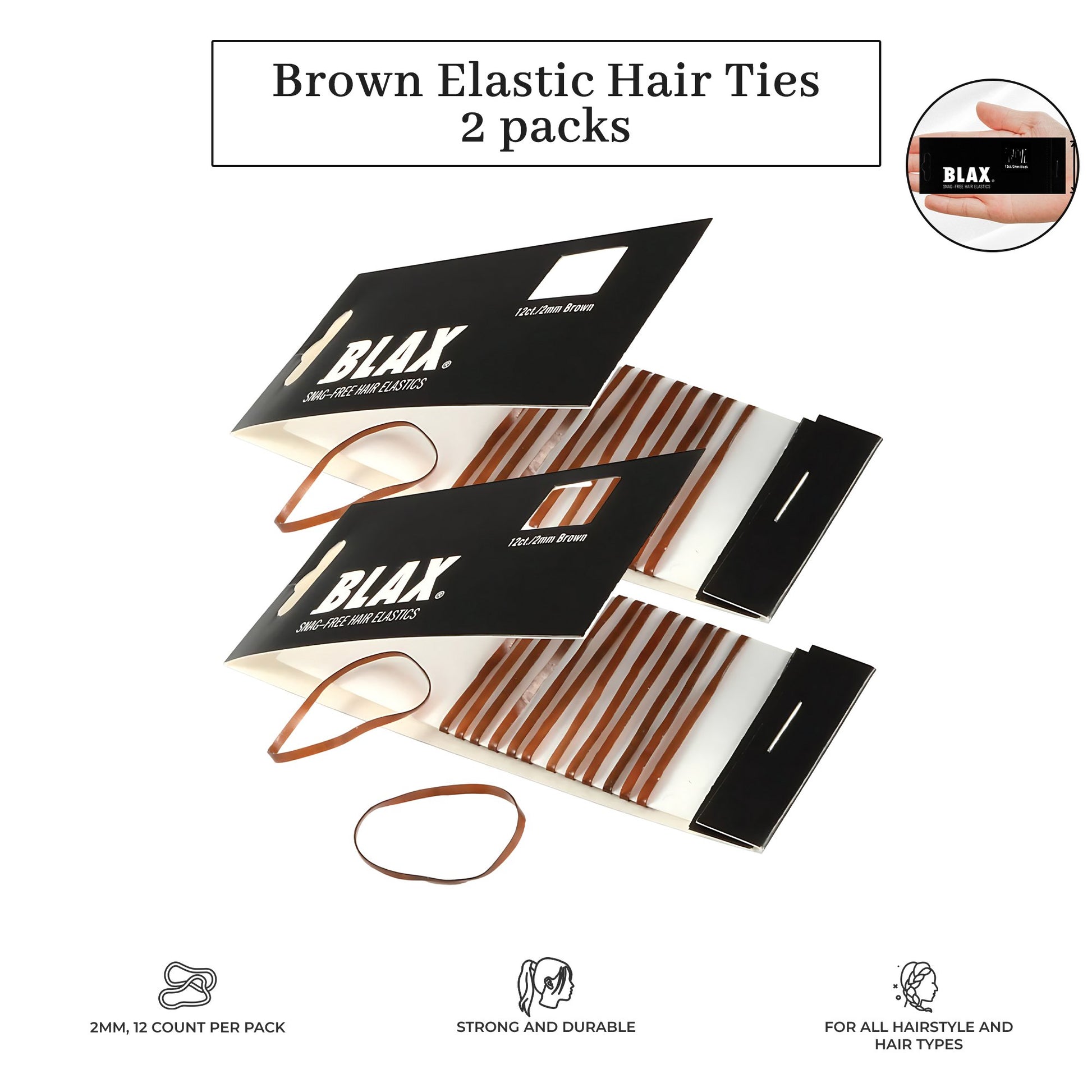 Blax Brown Hair Elastics – 2mm Snag-Free Seamless Hair Ties (12 Count, 2 Pack | 24 Total)