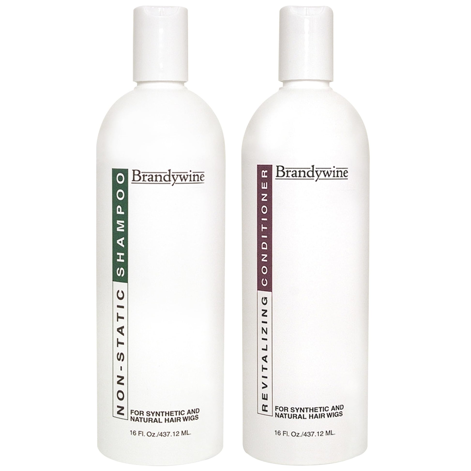 Best Value for the dollar! Brandywine Non -Static Shampoo and Conditioner cleans, conditions, removes hair spray and lacquer from Synthetic Fiber wigs and hairpieces. Can also be used on real/human hair.Brandywine Hair And Wig Care Set Includes:Brandywine Non-Static Shampoo 16 OuncesBrandywine Revitalizing Conditioner 16 OuncesFor Synthetic and Natural Hair, Wigs, and hairpieces.Cap color may vary.