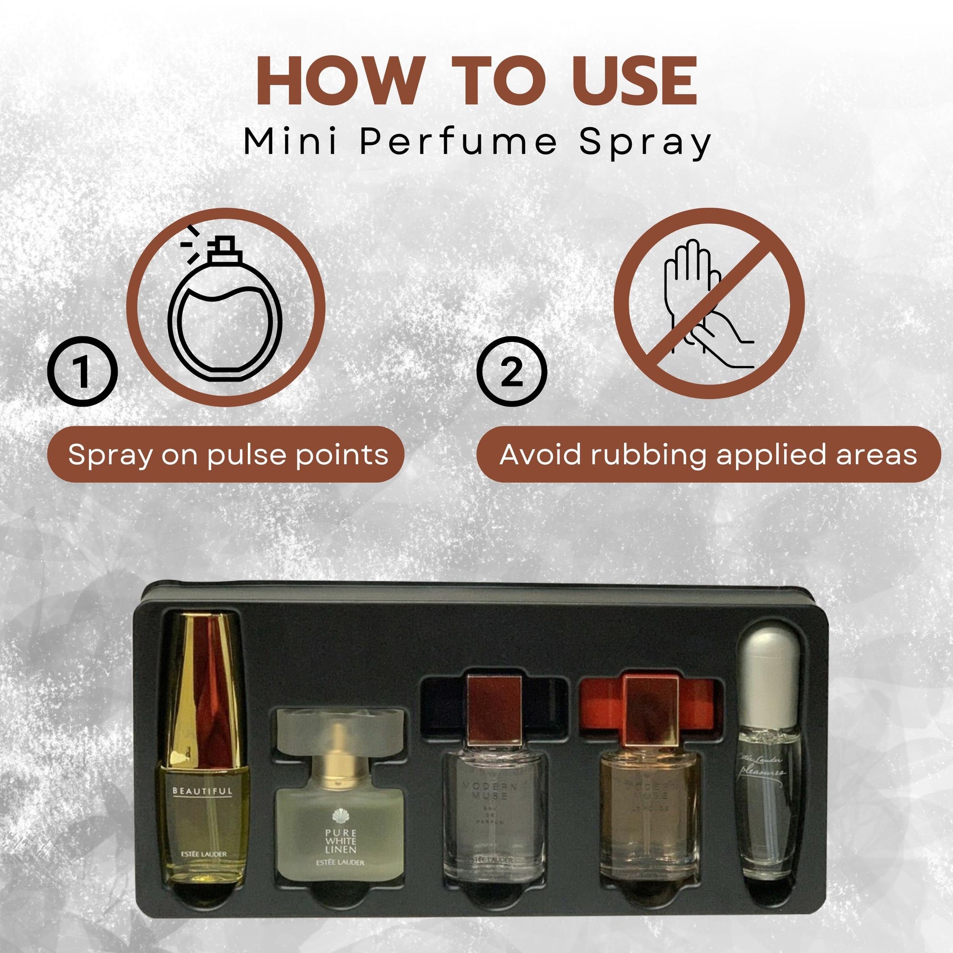 Discover a world of fragrance with this 5-Piece Eau de Parfum Variety Gift Set for women. This collection offers a selection of elegant scents, perfect for any occasion. Whether you're treating yourself or gifting someone special, this set is an ideal way to explore a variety of timeless perfumes. As an added bonus, the set includes a chic cosmetic pouch for your on-the-go beauty essentials.Set Includes: 5 x Eau de Parfum (variety of fragrances) 1 x Free Cosmetic PouchEstee Laude Perfume for WomenEDP Mini travel size