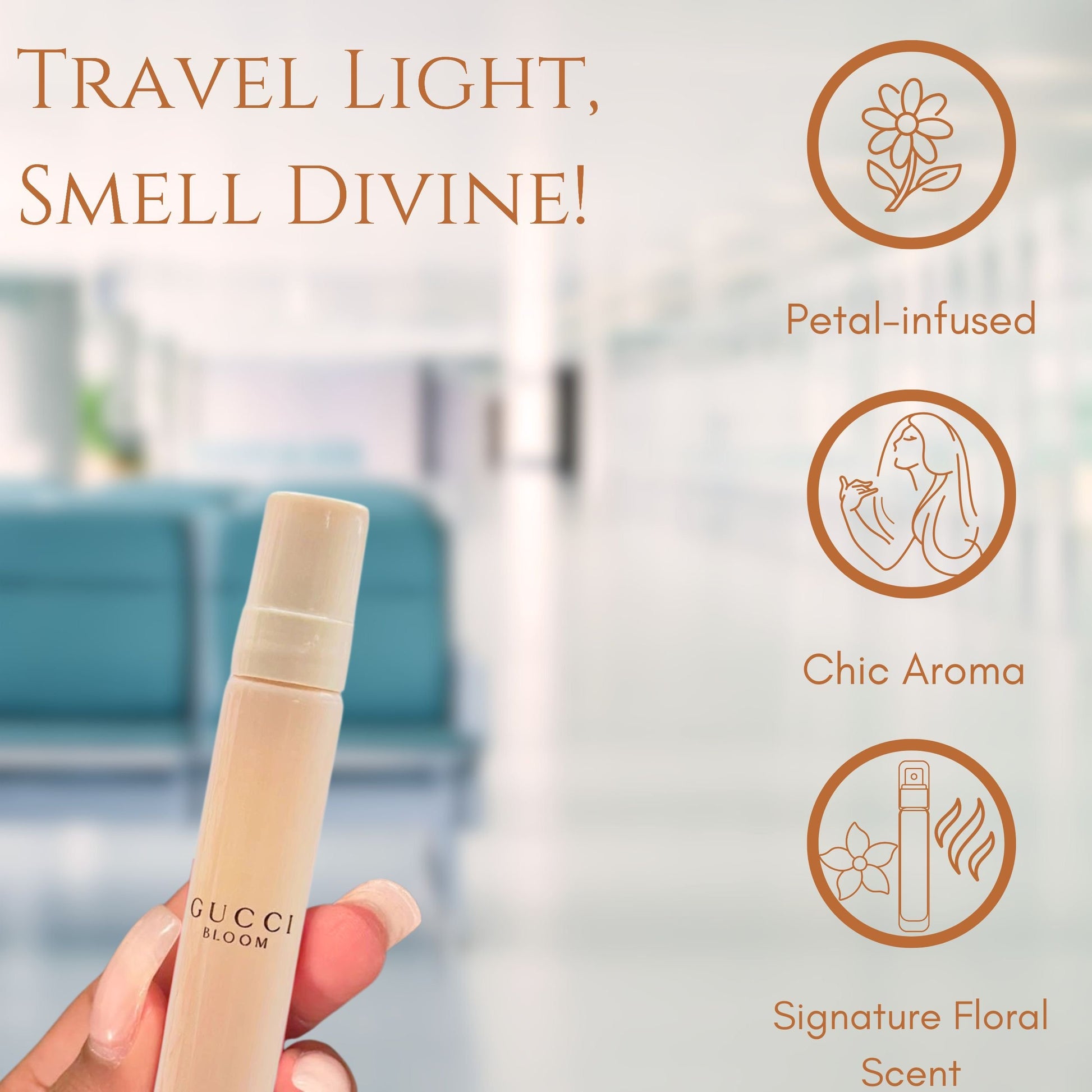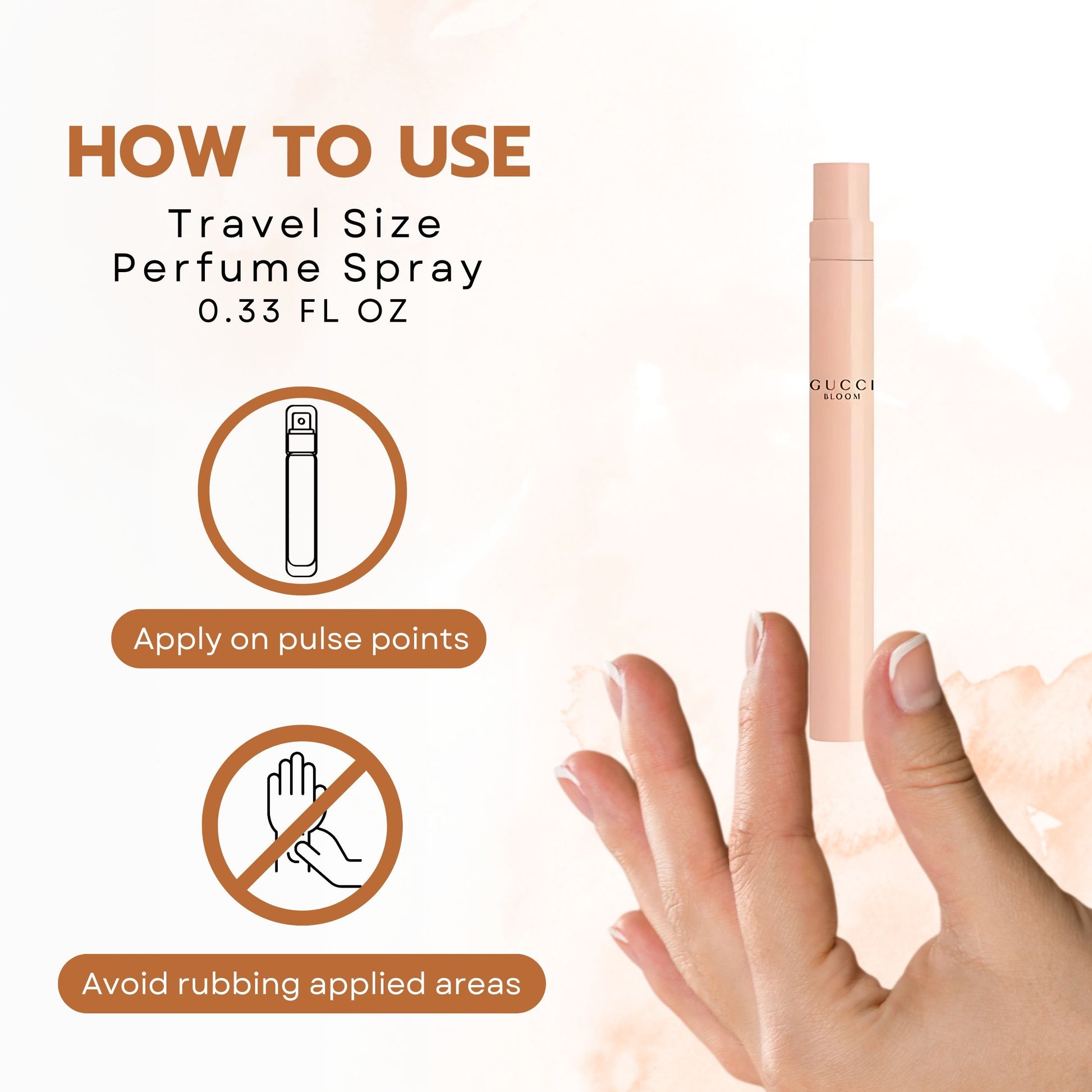 Gucci Bloom Perfume for Women Mini Perfume Spray EDP 0.33 Fl OzGUCCI SIGNATURE COLLECTION – A luxurious selection of high-quality fragrances designed for both women and men.BLOOM EAU DE PARFUM – A refined floral fragrance available in a 0.33 oz mini EDP Spray bottle.PERFUMES FOR WOMEN – Elegant and long-lasting scents, perfect for any occasion.PERFUME SAMPLES – An excellent way to discover new fragrances before purchasing a full-size bottle.TRAVEL-SIZE – Compact and convenient, ideal for carrying in your purse or using on the go.