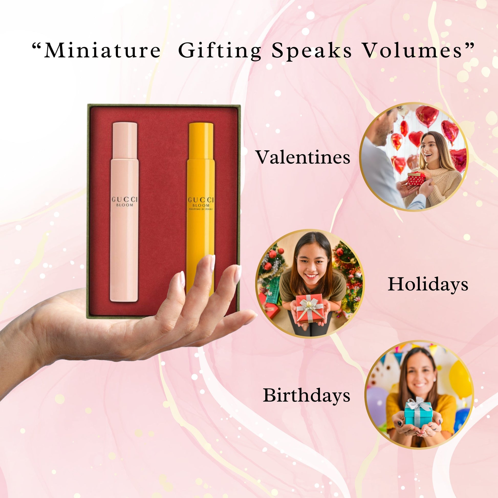 Experience the luxury of Gucci Bloom Rollerball Gift Set, featuring two premium 7.5ml eau de parfum rollerballs. This exquisite set includes the original Gucci Bloom EDP and the Bloom Profumo Di Fiori EDP, each crafted to provide a sophisticated floral scent that embodies the essence of modern femininity. The Bloom EDP offers a harmonious blend of jasmine bud extract, tuberose, and Rangoon creeper, while the Bloom Profumo Di Fiori EDP introduces additional notes of ylang-ylang and sandalwood, creating a vibrant and lush aroma. Perfect for on-the-go elegance, these rollerballs fit effortlessly into your purse or travel bag, allowing you to carry the timeless allure of Gucci wherever you go. The elegant design of the rollerballs reflects Gucci's commitment to style and quality, making this set a perfect gift or a luxurious addition to your personal fragrance collection. Indulge in the rich, long-lasting scents of Gucci Bloom and Bloom Profumo Di Fiori, and embrace the beauty of premium floral fragrances.Gucci Bloom Perfume EDP 2X 0.25 Fl ozGucci Guilty Fragrance for WomenMini Sampler Spray SetTravel Size PerfumePerfect Gift for Women