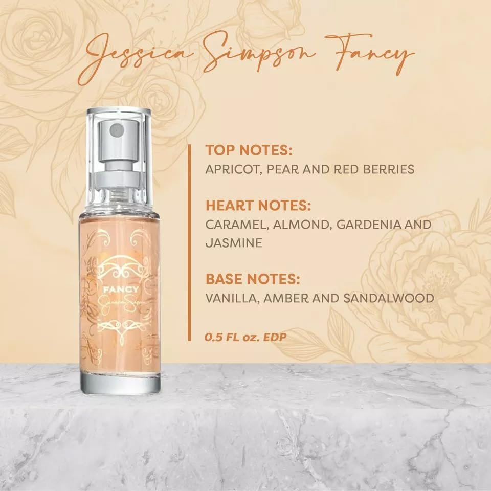 The Jessica Simpson 4 x 0.5 Eau De Parfum Spray Set for Women offers a diverse collection of scents, including Fancy, Signature, I Fancy You, and Fancy Love. Each fragrance captures a unique essence, ranging from floral and fruity to warm and sensual, providing a versatile selection to suit various moods and occasions. Ideal for women who enjoy exploring different aromas and expressing their individual style through fragrance.Jessica Simpson Fancy 0.5 FL oz. EDPJessica Simpson Signature 0.5 FL oz. EDPJessica Simpson I Fancy you 0.5 FL oz. EDPJessica Simpson Fancy Love 0.5 FL oz. EDPPerfect Gift for WomenTravel Size Perfume