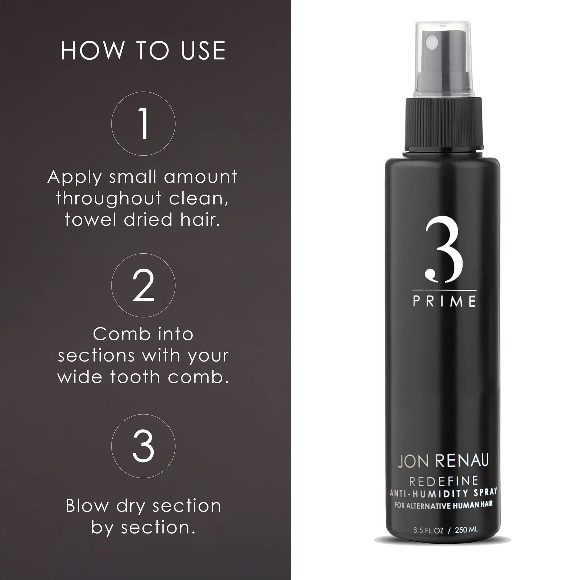 "Jon Renau's Redefine anti-frizz hair treatment is here to help tame your tresses for a gorgeous hair day, every day. Designed for your Jon Renau Remy Human Hair styles, Redefine provides a smooth, moisture-balanced look on straight or textured hair. This heat-activated spray protects against frizz-inducing humidity for over 24 hours. Benefits: - Proven anti-frizz protection for up to 24hrs. - Protects hairs from damage caused by flat irons, curling irons, hair dryers, and other hair drying tools - Transforms the texture of your hair leaving it soft and silky - Protects against heat - Hydrolyzed Keratin repairs and restores moisture, elasticity, luster, and smoothness."HUMIDITY SHIELD SPRAY: A humidity shield that manages hair that tends to go bizarre in humid weather. The ground-breaking complex functions as an imperceptible shield for your hair, enhanced with ingredients that smooth and seal the hair to shield it from excess moisture and leave behind a weightless salon shine.LIGHTWEIGHT & LONG-LASTING: JON RENAU Scientists have worked hard to ensure this anti-frizz & anti-humidity spray formula can pack a punch without the greasy, heavy effects of traditional protectant sprays. Once this heat sealing technology is locked into the hair, it continues to work its magic all day long. Get unbeatable hair shine and frizz control with Redefine hair styling products.ANTI-FRIZZ PROTECTION: Great-looking hair can quickly become frizzy, puffy, or otherwise unruly due to heat, humidity, or high porosity caused by chemical treatments. JON RENAU hair care anti-frizz and anti-humidity spray utilize a heat-activated formula that transforms the texture of your hair leaving it soft and silky.HOW TO USE: We recommend spraying this hair care product from the mid-lengths to the ends on your alternative human hairpieces when damp, then proceed to blow-dry/style your piece for a polished and frizz-free finish. After, you can run your flat iron/hot tools over the hair to enhance the results and lock in the hair products.SUITABLE FOR ALL HAIR TYPES: Wheather you have a short bob with bangs or red carpet curls, Jon Renau Redefine Anti Humidity Spray for women to protect your style against wine and humidity, leaving you beautiful and with natural movement all day long and restoring the bouncy spring to your locks while improving overall hair elasticity.