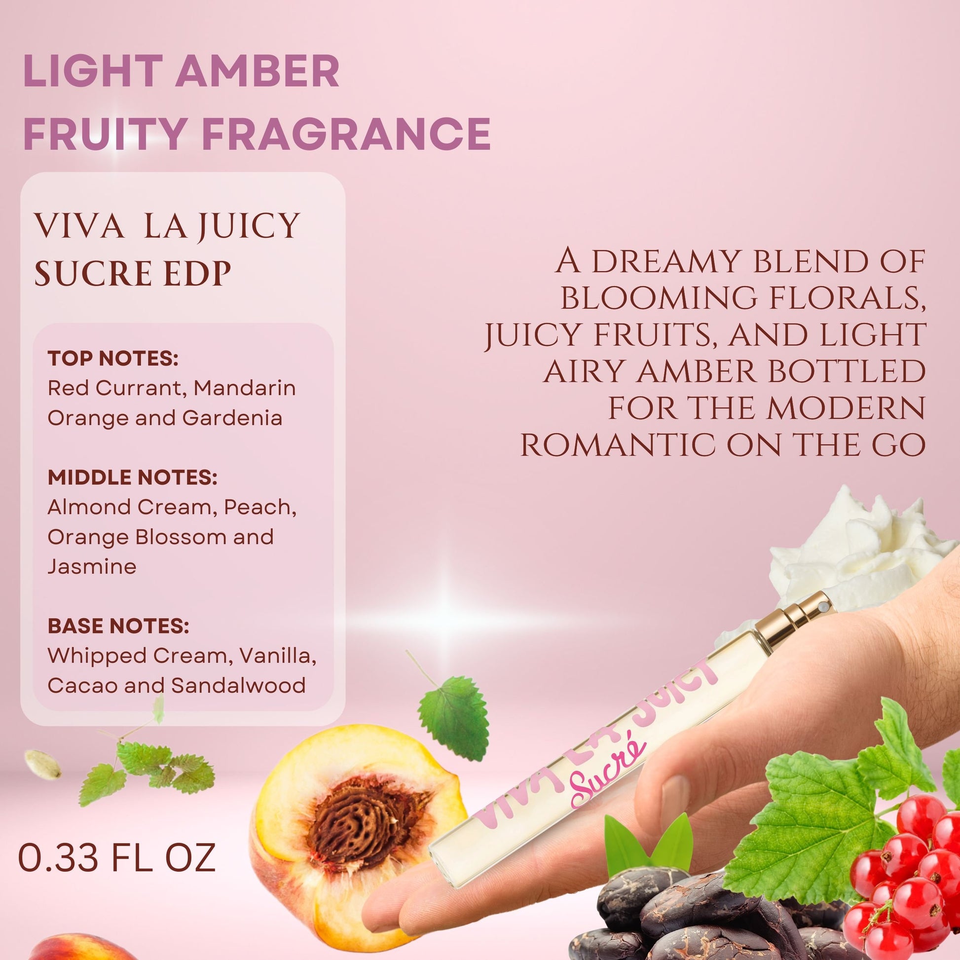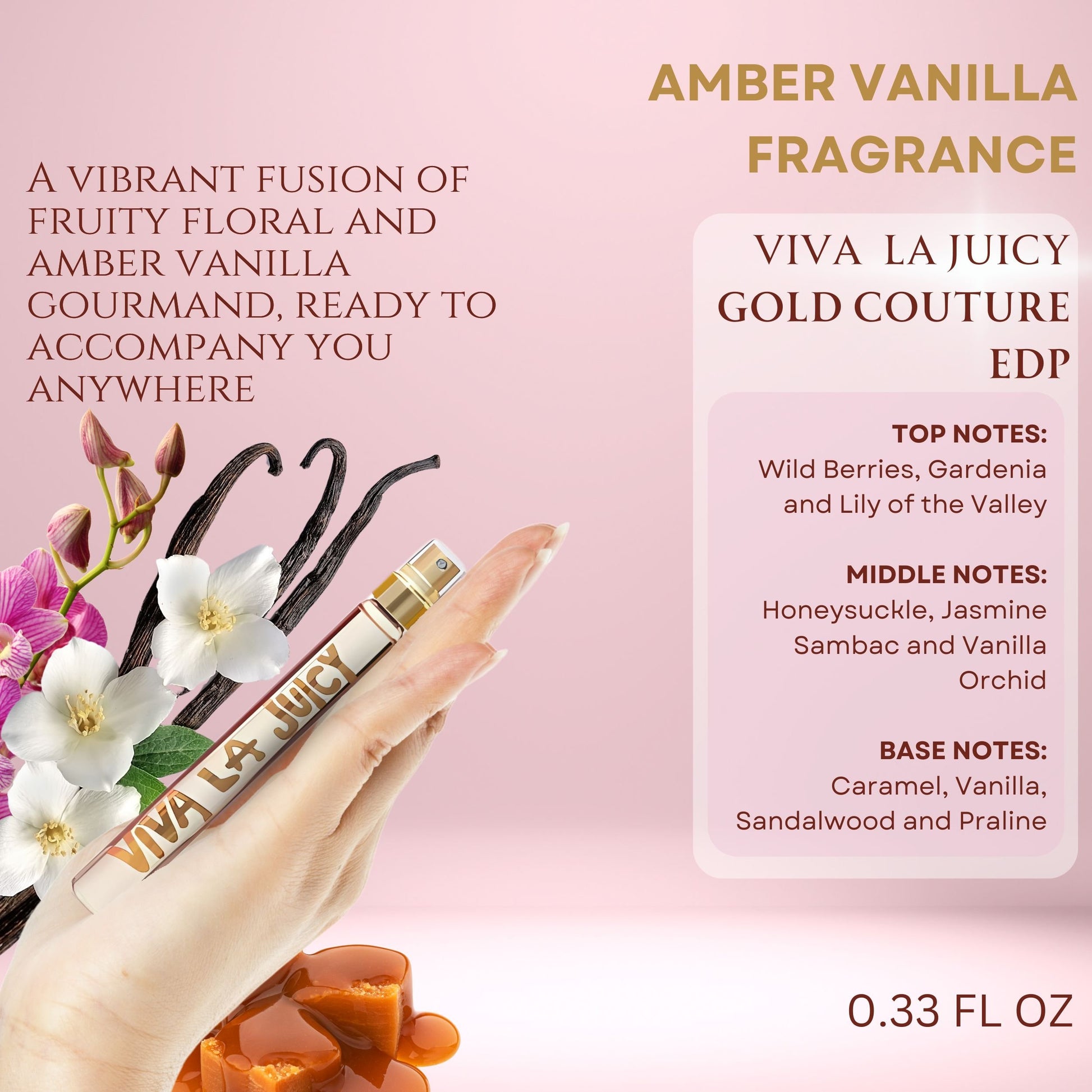 With vibrant notes of wild berries, mandarin, honeysuckle, gardenia, amber, caramel, vanilla, and sandalwood, Viva La Juicy delivers a scent that is playful, elegant, and irresistible. Each spray is packaged in a sleek atomizer, making it perfect for your purse, gym bag, or travel pouch.