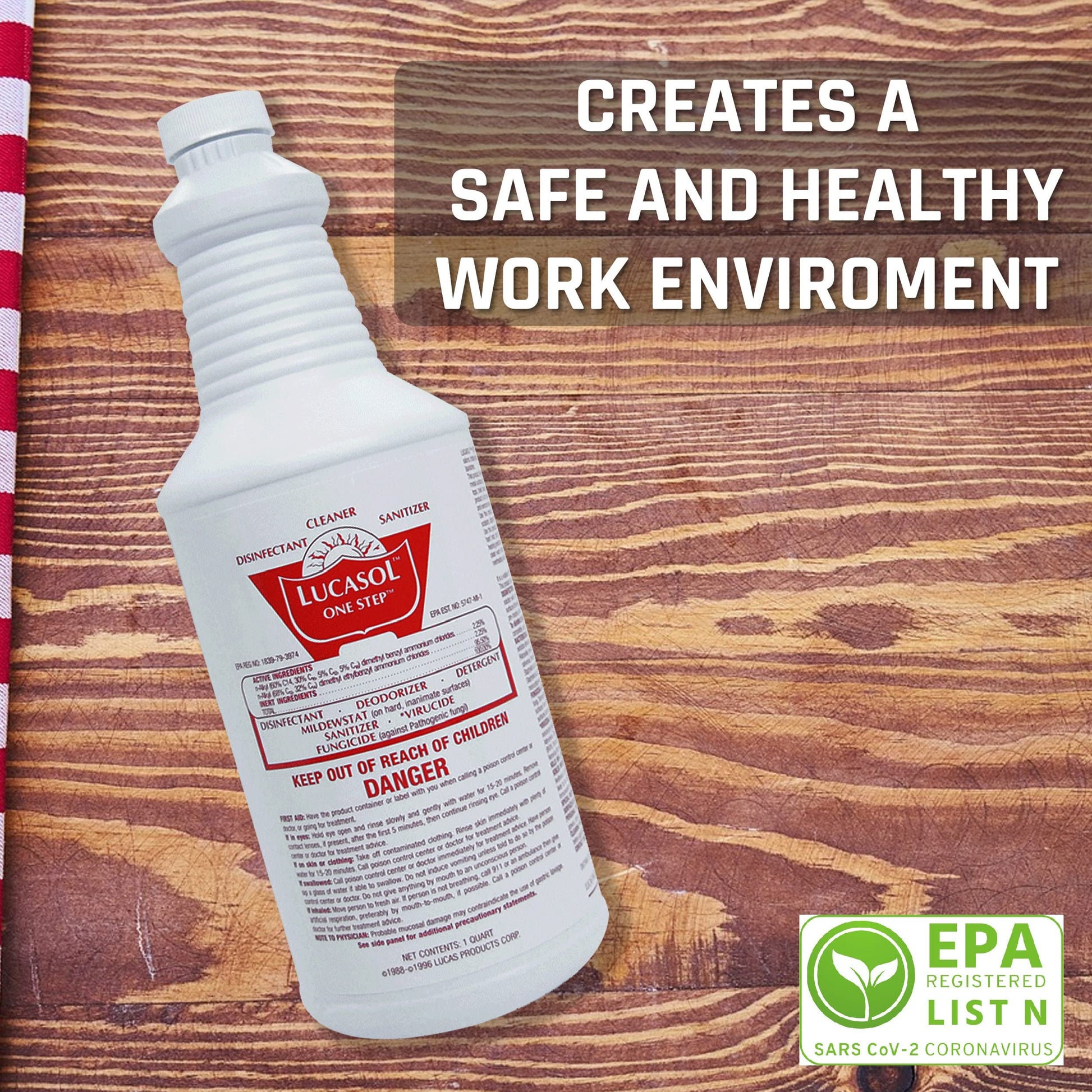 Includes: 1 Quart (32 oz) Lucasol One Step Disinfectant