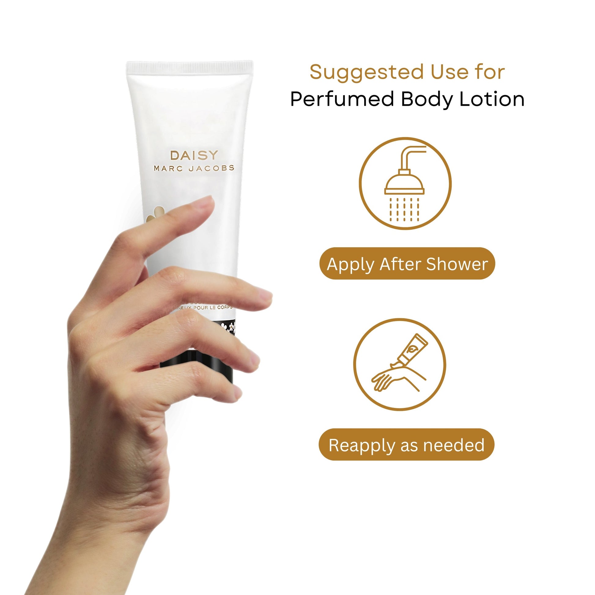 Marc Jacobs Daisy Eau de Toilette is an enchanting, radiant, free-spirited perfume. Launched in 2007 this fragrance will look wonderful on any dressing table with its foam “blooming” daisies on the bottle cap. The perfume features top fruity notes of strawberry and violet, heart notes of violet petals, gardenia and jasmine all enhanced by the base notes of musk and vanilla making this fragrance perfect for a playful, bright summer’s day. The most significant note is violet and it is a moderate lasting fragrance.Marc Jacobs Perfume for Women Gift SetDaisy Perfume For Women Spray EDT 3.3 fl oz /100 mlDaisy Perfumed Body Lotion 2.5 oz/75 mlDaisy Perfume for Women Trave Spray 0.34 Fl. ozHoliday Gift