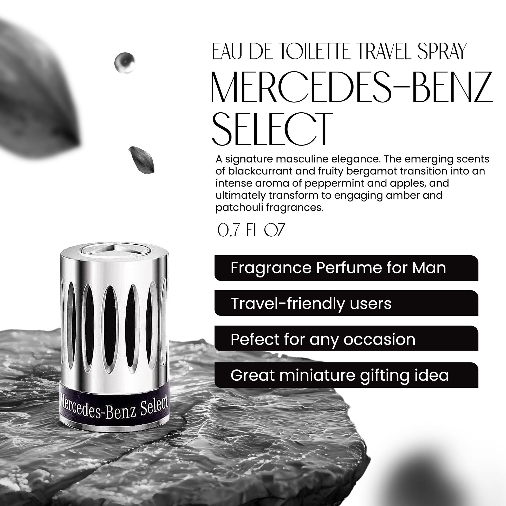 Mercedes-Benz Select Travel Collection, Classic and Legendary with Long-Lasting Notes, Choose The Freshness Of a Fruity Bergamot & Blackcurrant Accord, Eau De Toilette, Original, 0.68 Oz