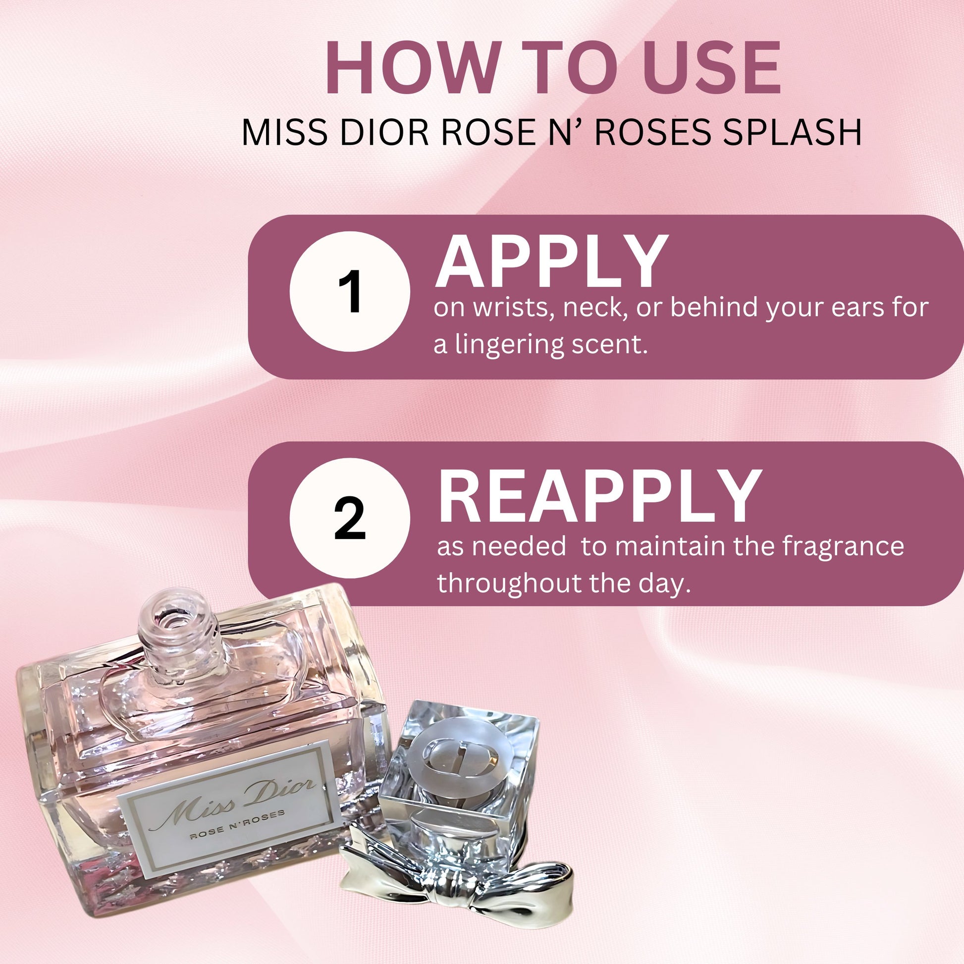 Dior Miss Rose N'Roses Eau de Toilette - .17 oz. MiniA gorgeous, lively floral with key notes of Grasse Rose Absolute, Italian Mandarin, and White Musk AccordFragrances are measured by weight, not volume; therefore bottle may not be filled to capacity● Top Note: Grasse, Damascus Roses ● Middle Note: Italian Mandarin, Bergamot, Geranium ● Base Note: White MuskSASA Official Shop Quality Insurance!