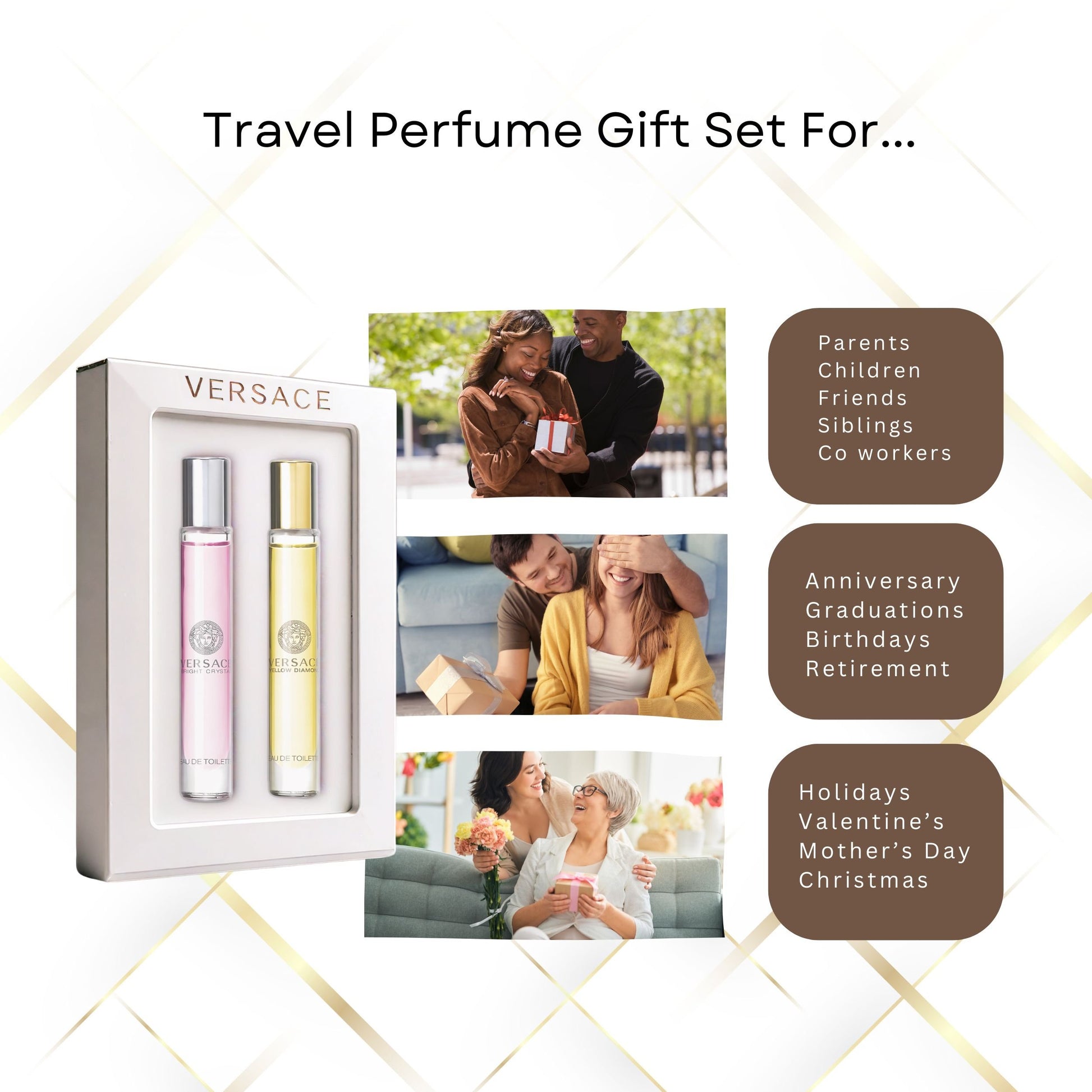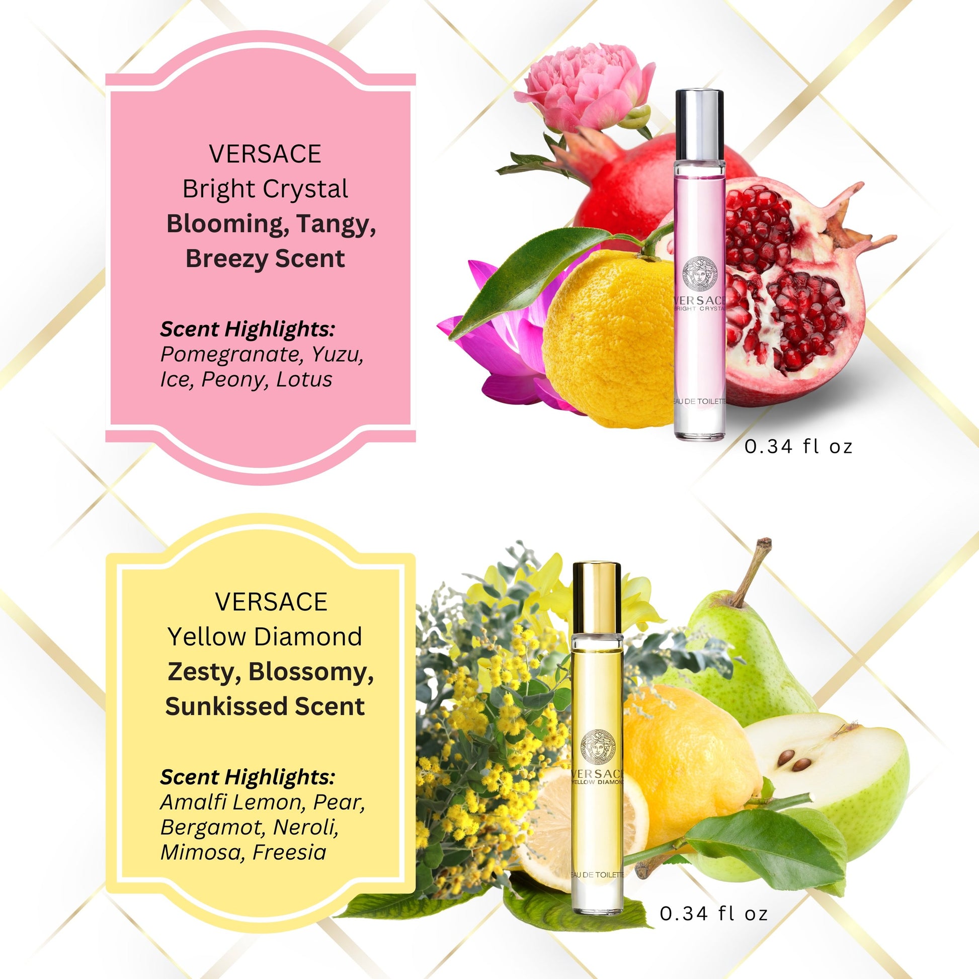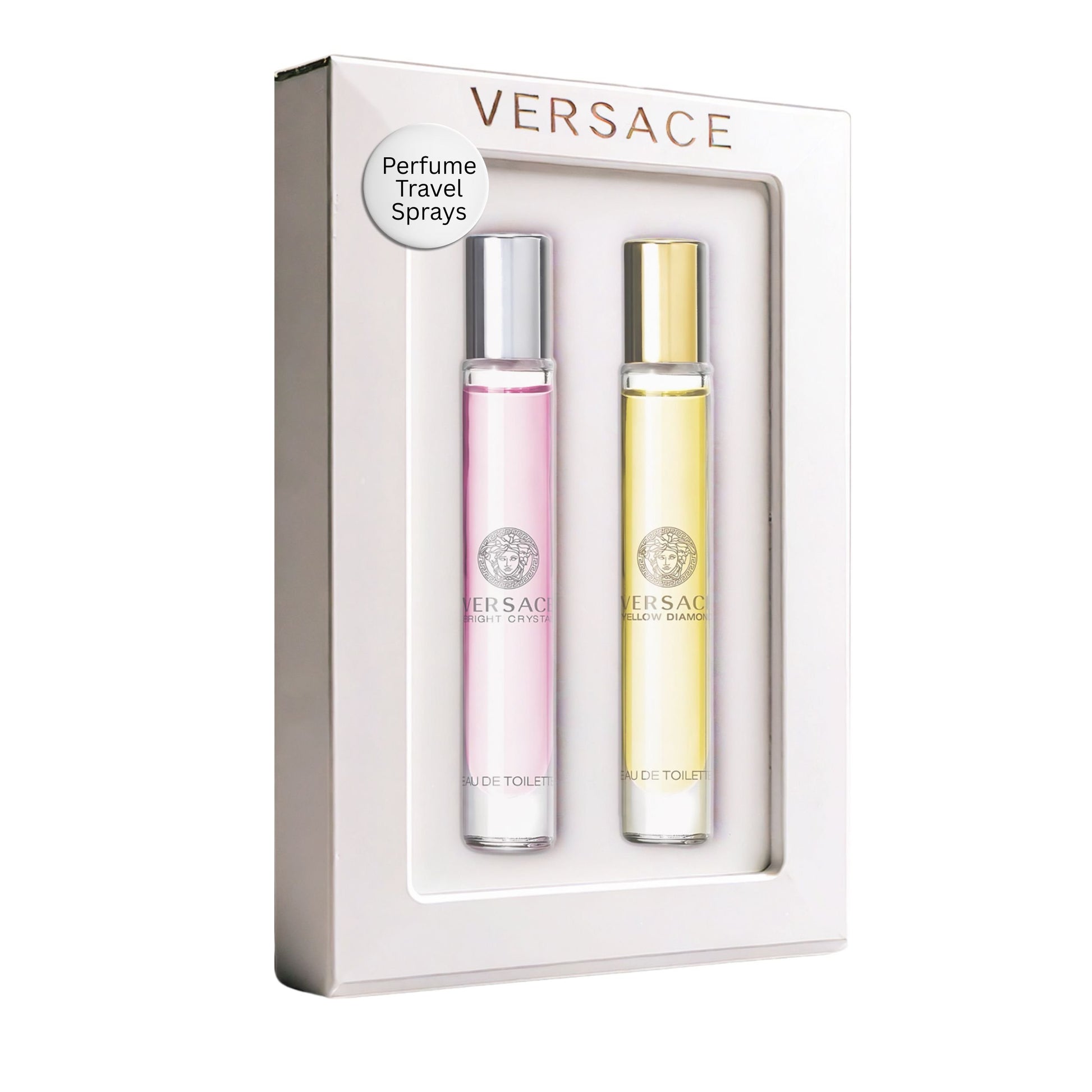 Discover the Versace Mini Perfume Gift Set for Women, featuring two must-have fragrances: Bright Crystal and Yellow Diamond. These designer perfumes offer a blend of floral, citrus, and musky notes, providing a captivating and elegant scent experience. The travel-size perfume set is perfect for everyday wear, gifting, or adding a touch of luxury to your collection. Whether you're shopping for a gift for her, a women’s fragrance set, or a signature scent, this Versace mini set is the ultimate choice.VERSACE SIGNATURE COLLECTION – This luxury mini perfume set features two iconic Versace fragrances: Bright Crystal and Yellow Diamond, offering timeless, elegant scents for any occasion.PERFUMES FOR WOMEN – A beautifully crafted designer fragrance set with floral, citrus, and musk notes, perfect for daily wear or special occasions.DESIGNER PERFUME SAMPLER – This Versace perfume duo is ideal for testing new scents before committing to a full-size bottle, making it a must-have for perfume lovers.MINI PERFUME SET – Includes two 10ml Eau de Parfum bottles, a perfect addition to any luxury fragrance collection. Stylish, compact, and sophisticated.TRAVEL SIZE – TSA-approved, easy to carry, and ideal for purses, handbags, or travel. Stay fresh and confident wherever you go with these mini Versace perfumes.