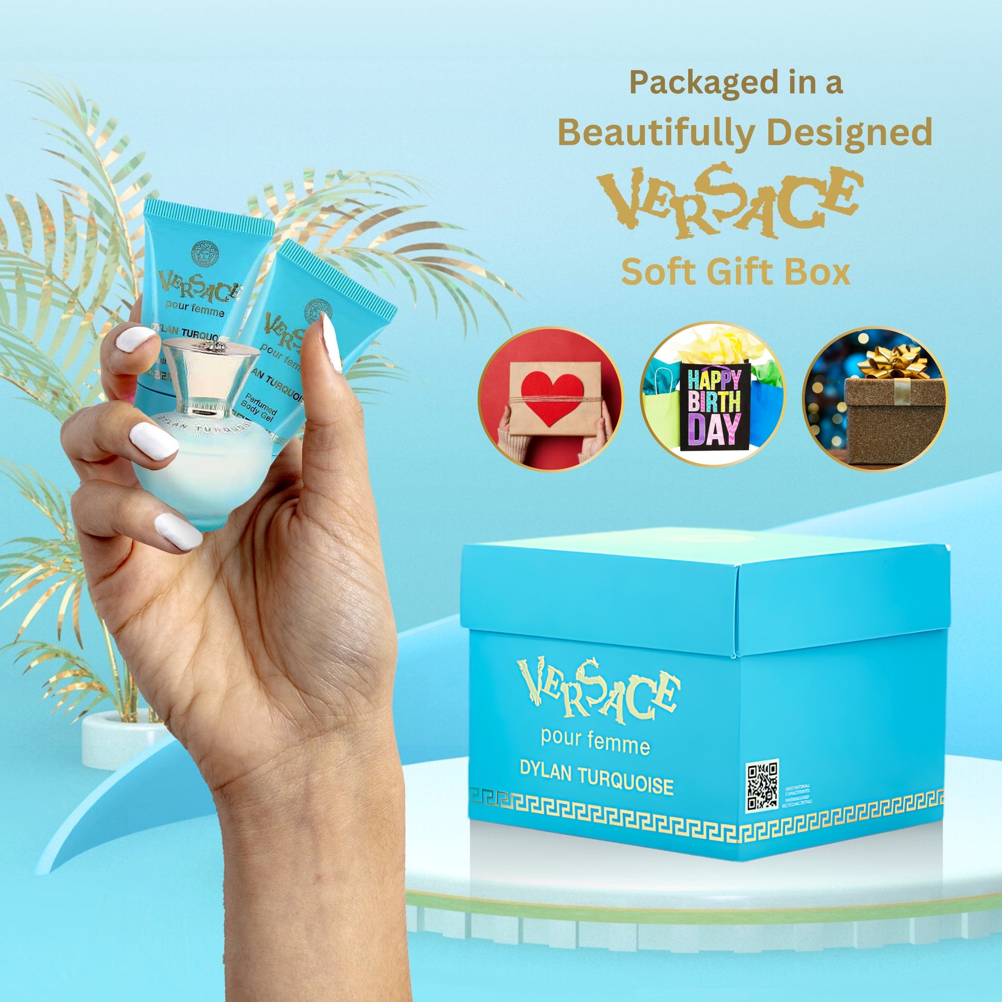 Versace Dylan Turquoise Womens Mini Perfume Trio Gift Set (5ml EDT Splash, 23ml Body Gel & 23ml Shower Gel)